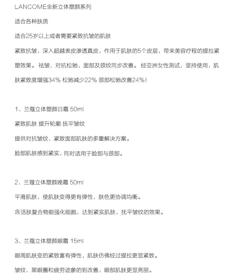 【包邮包税】LANCOME兰蔻立体塑颜【日霜50ml+晚霜50ml+眼霜15ml】 三件套装