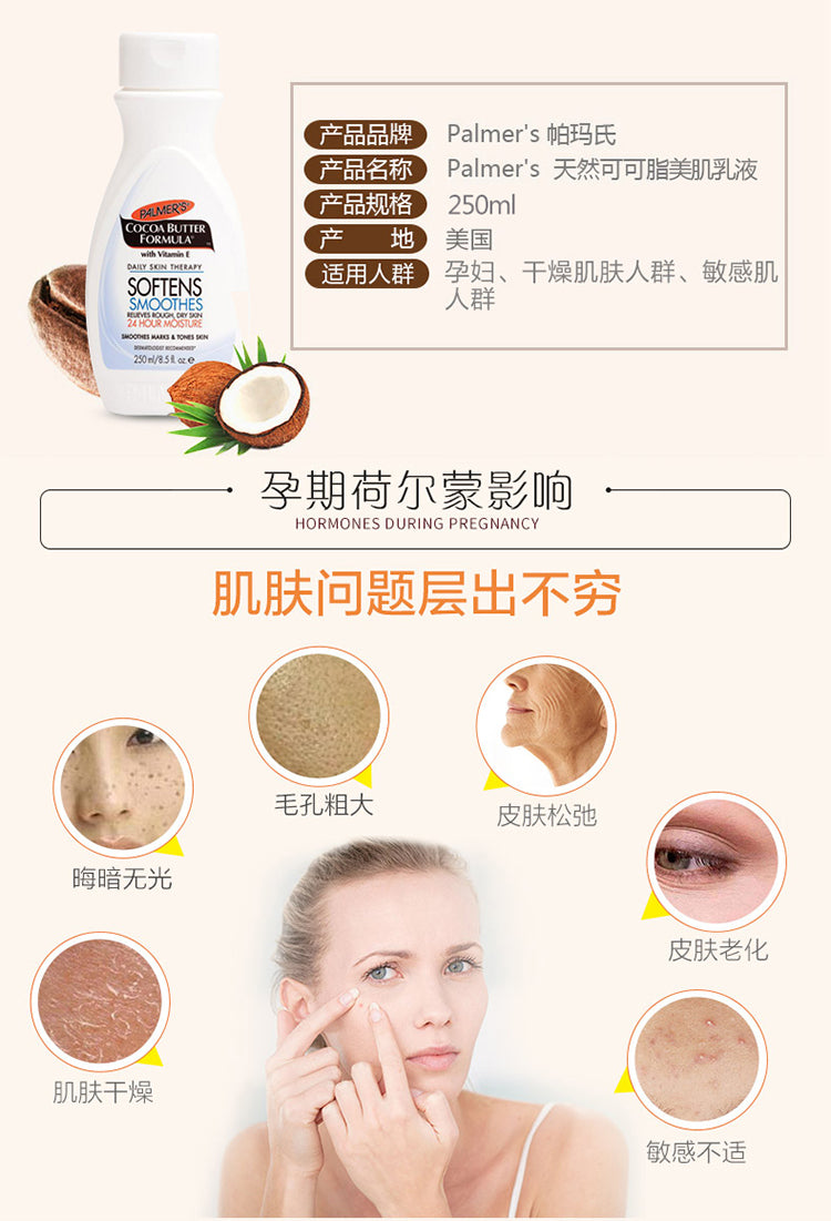 | 品名: | 美国 帕玛氏PALMER'S可可脂美肌乳液 250ML |
