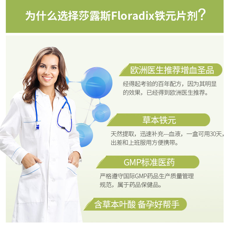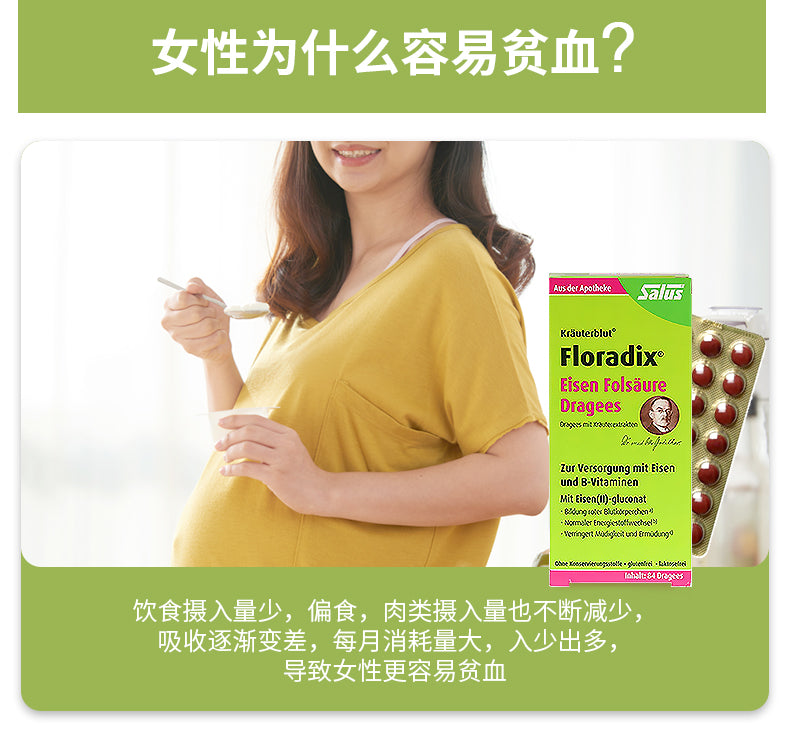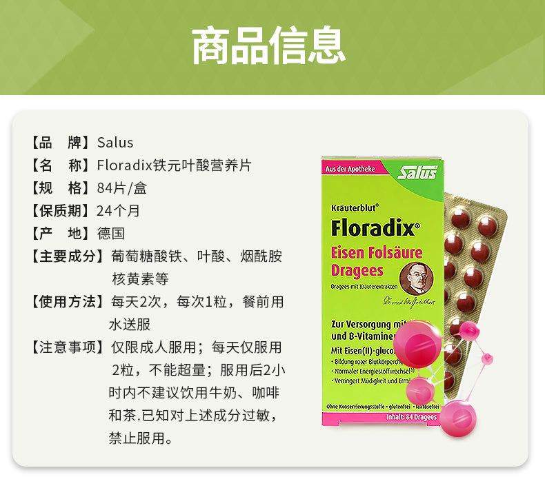 【包邮包税】Floradix莎露斯Salus铁元片剂孕妇补铁补血 绿版铁元 84片