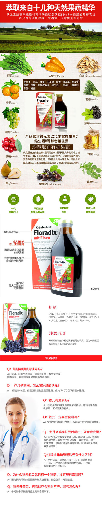 | 品名: | 德国Salus Floradix 红版铁元补铁补血 祛黄美颜好气色 |