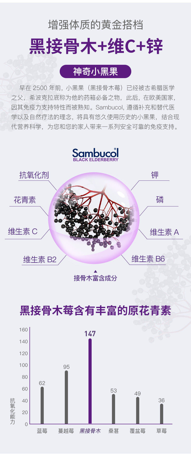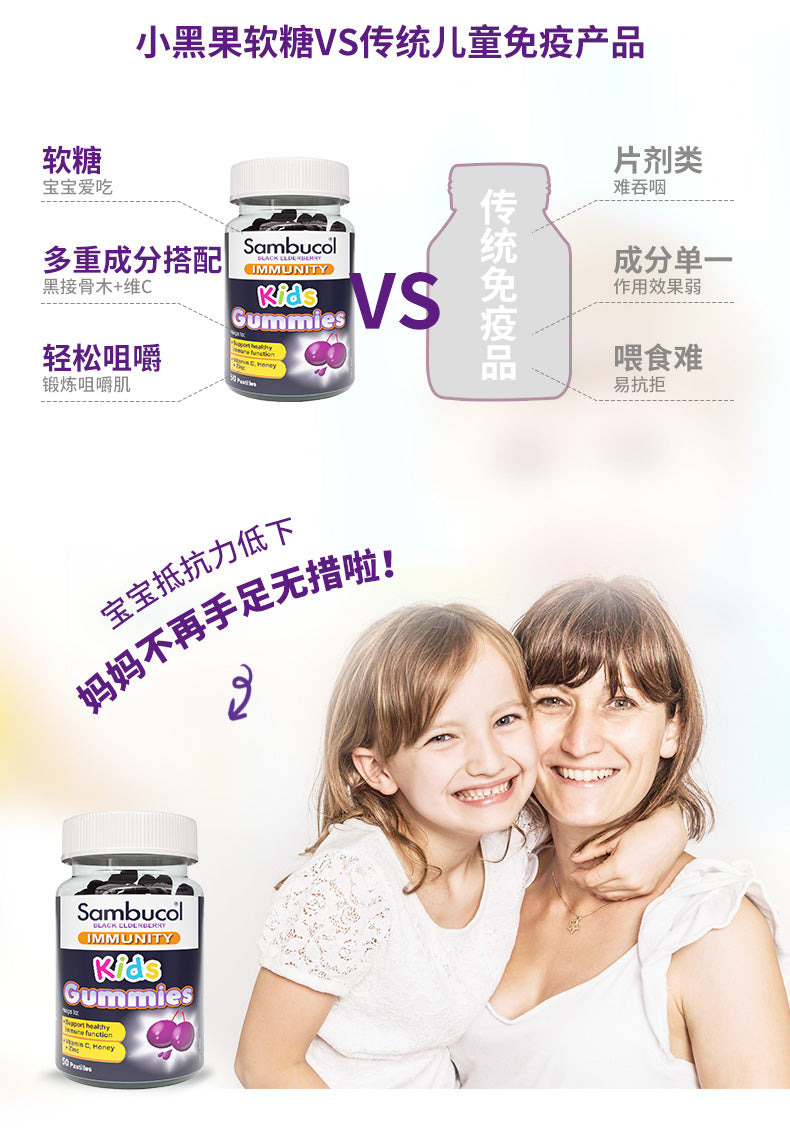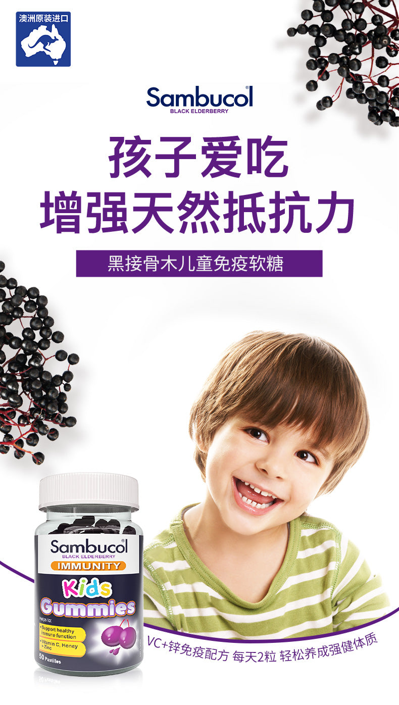 | 品名: | 澳洲Sambucol小黑果黑接骨木莓儿童补充维生素C补锌VC免疫力软糖 |