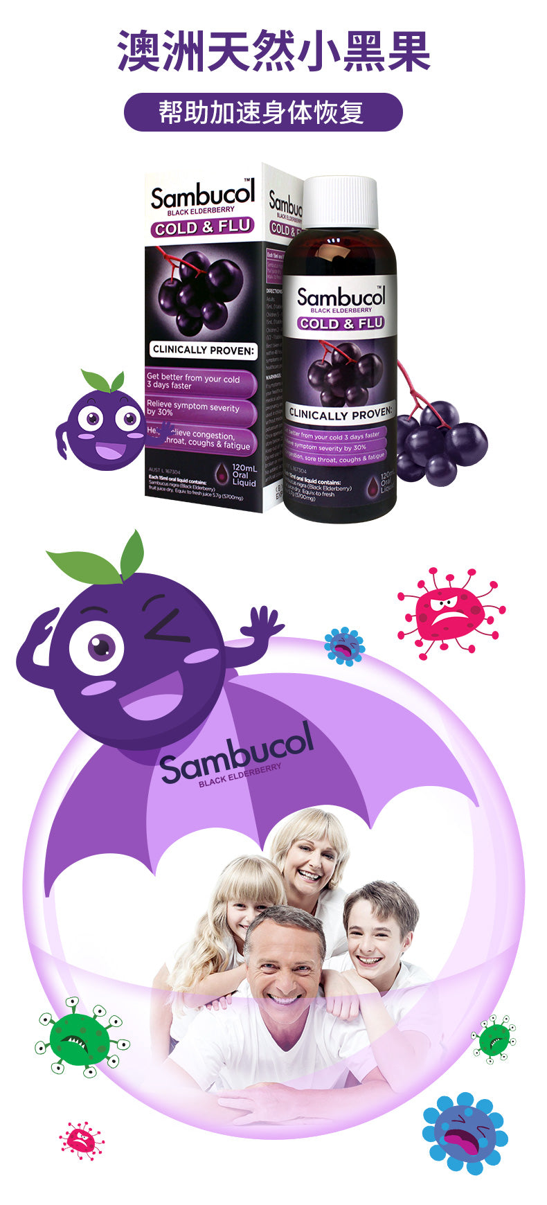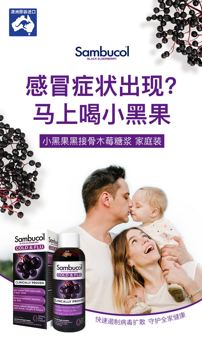 | 品名: | 澳洲SAMBUCOL 小黑果 黑接骨木糖浆 120ml 葡萄糖酸锌 |
