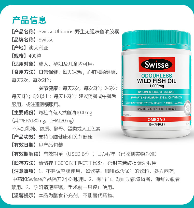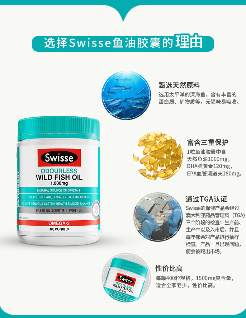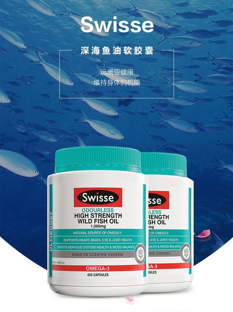 主页 Swisse/斯维诗 【包邮包税】澳洲Swisse WILD FISH OIL无腥味野生深海鱼油1500mg 400粒