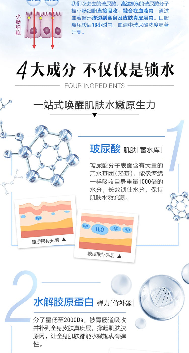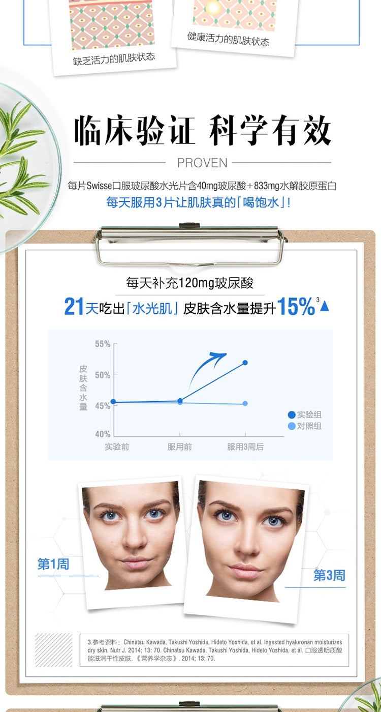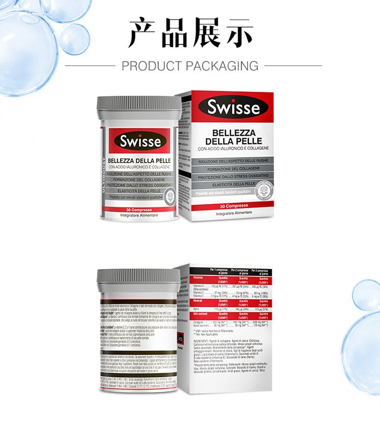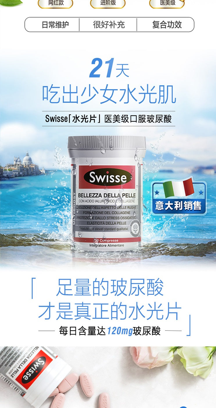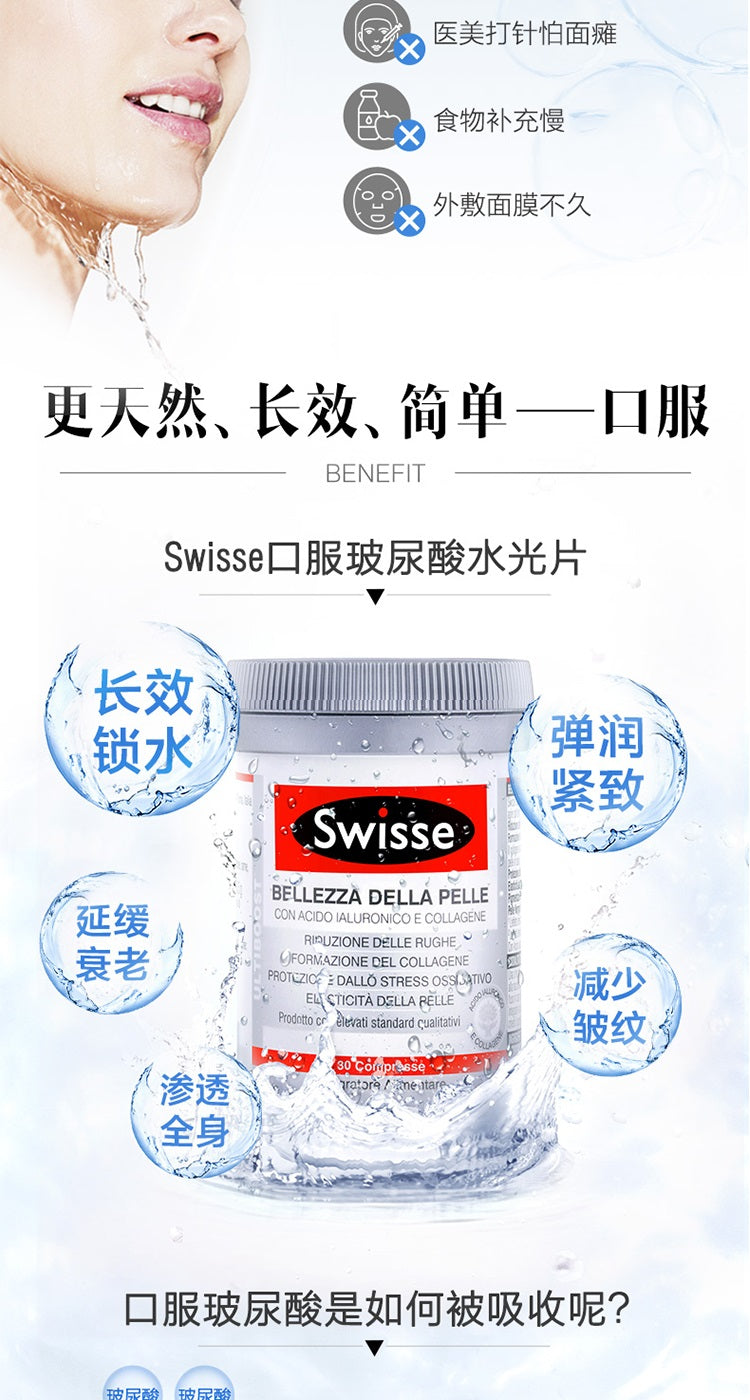 【包邮包税】澳洲Swisse BELLEZZA DELLA PELLE口服玻尿酸胶原蛋白养颜水光片 30片