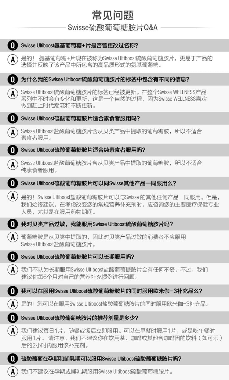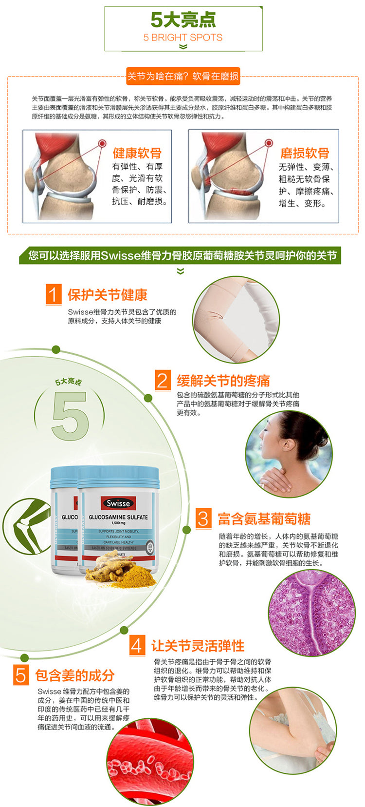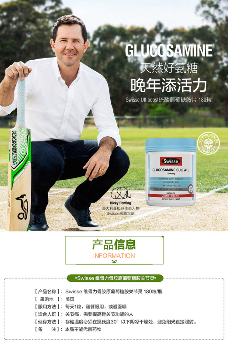 主页 Swisse/斯维诗 【包邮包税】澳洲Swisse CLUCOSAMINE SULFATE维骨力硫酸氨基葡萄糖软骨素 180粒