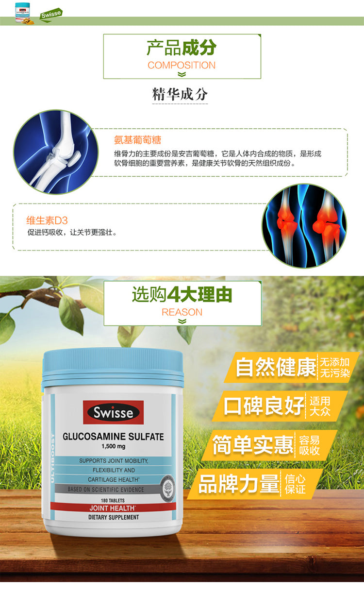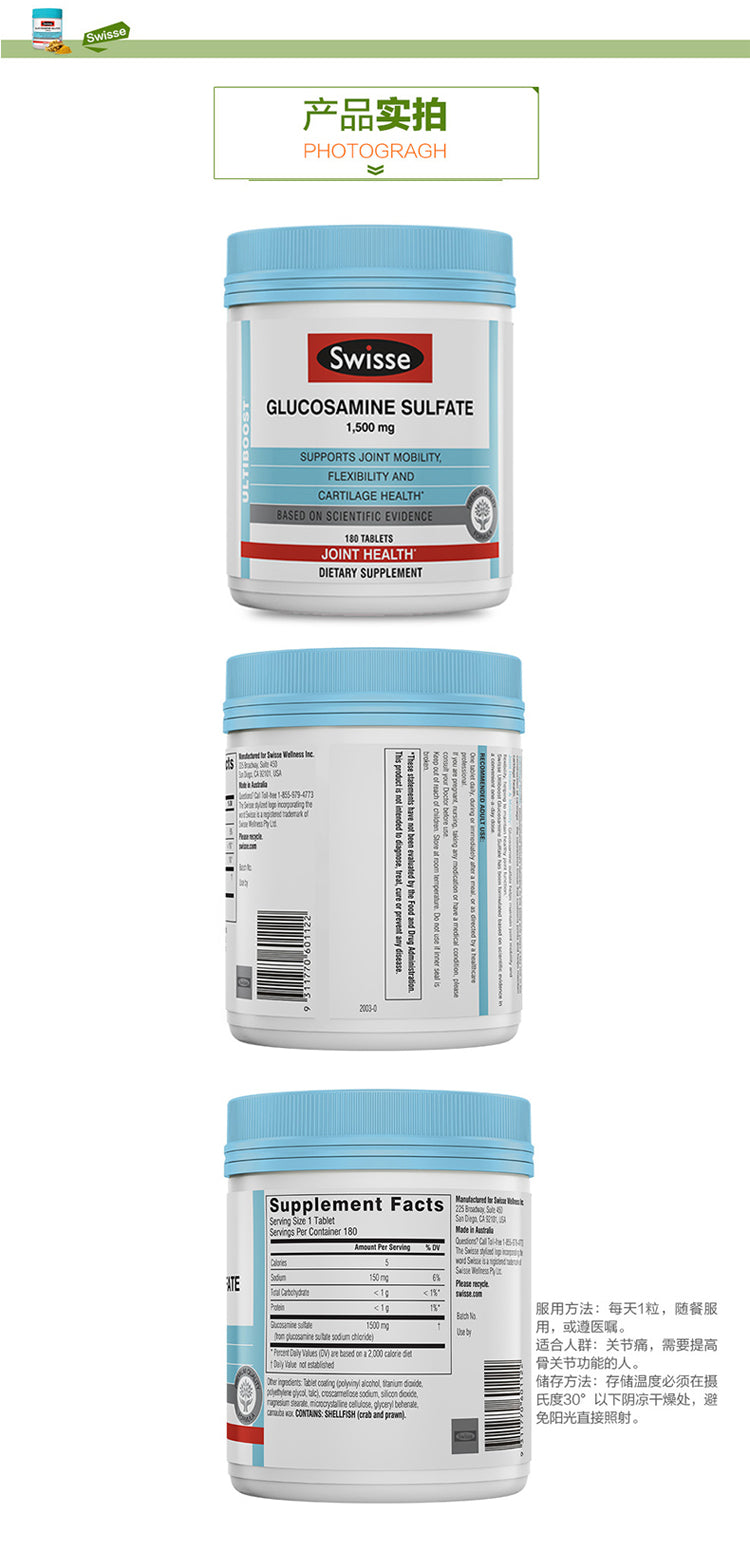 【包邮包税】澳洲Swisse CLUCOSAMINE SULFATE维骨力硫酸氨基葡萄糖软骨素 180粒