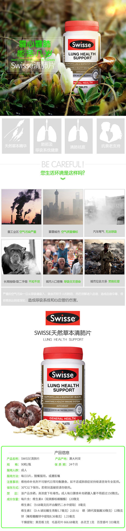 主页 Swisse/斯维诗 【包邮包税】澳洲swisse LUNG HEALTH SUPPORT清肺灵天然草本护肺润肺祛痰防雾霾清肺片 90粒