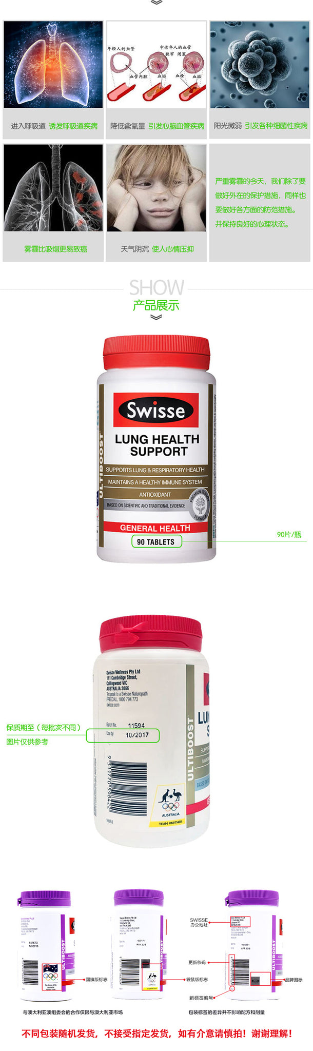 【包邮包税】澳洲swisse LUNG HEALTH SUPPORT清肺灵天然草本护肺润肺祛痰防雾霾清肺片 90粒
