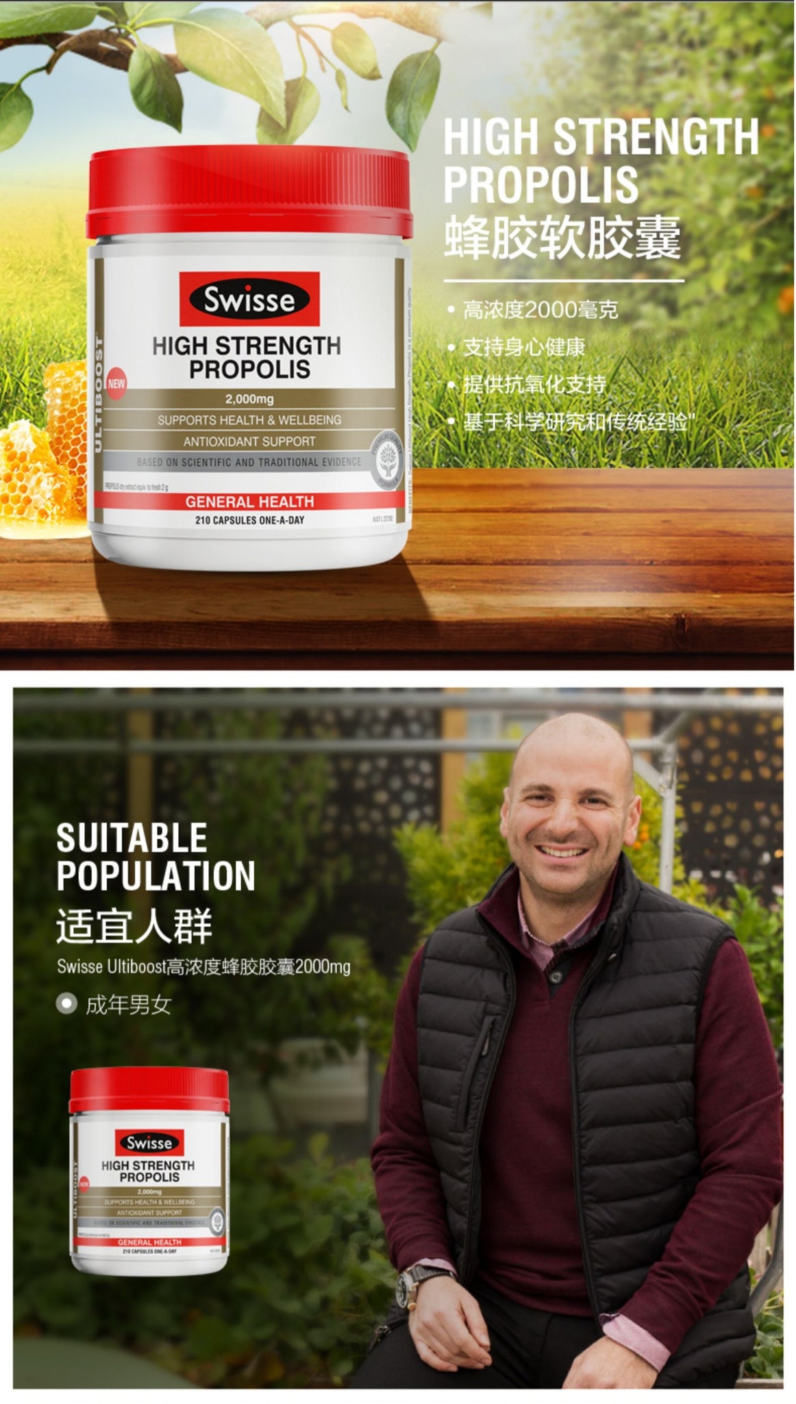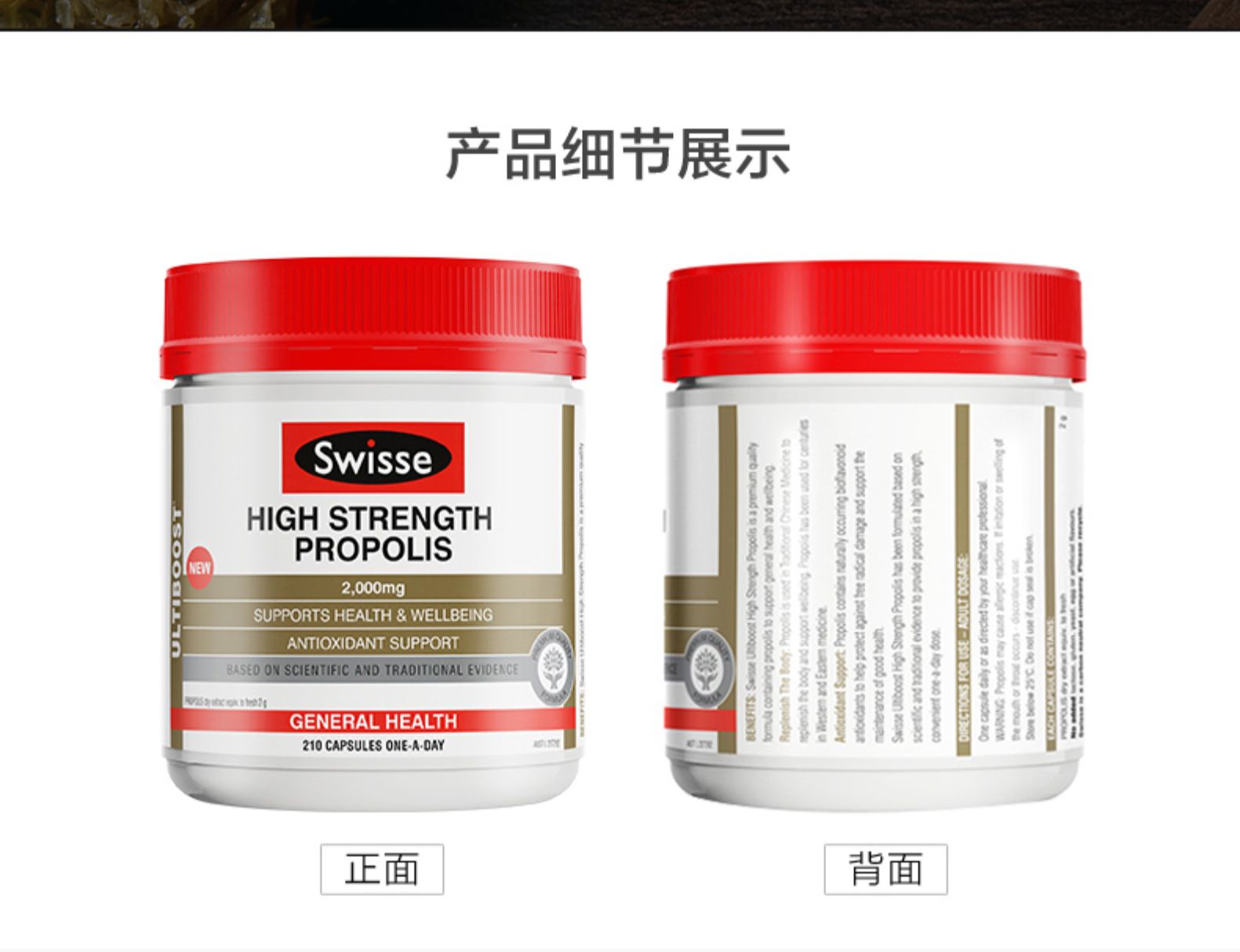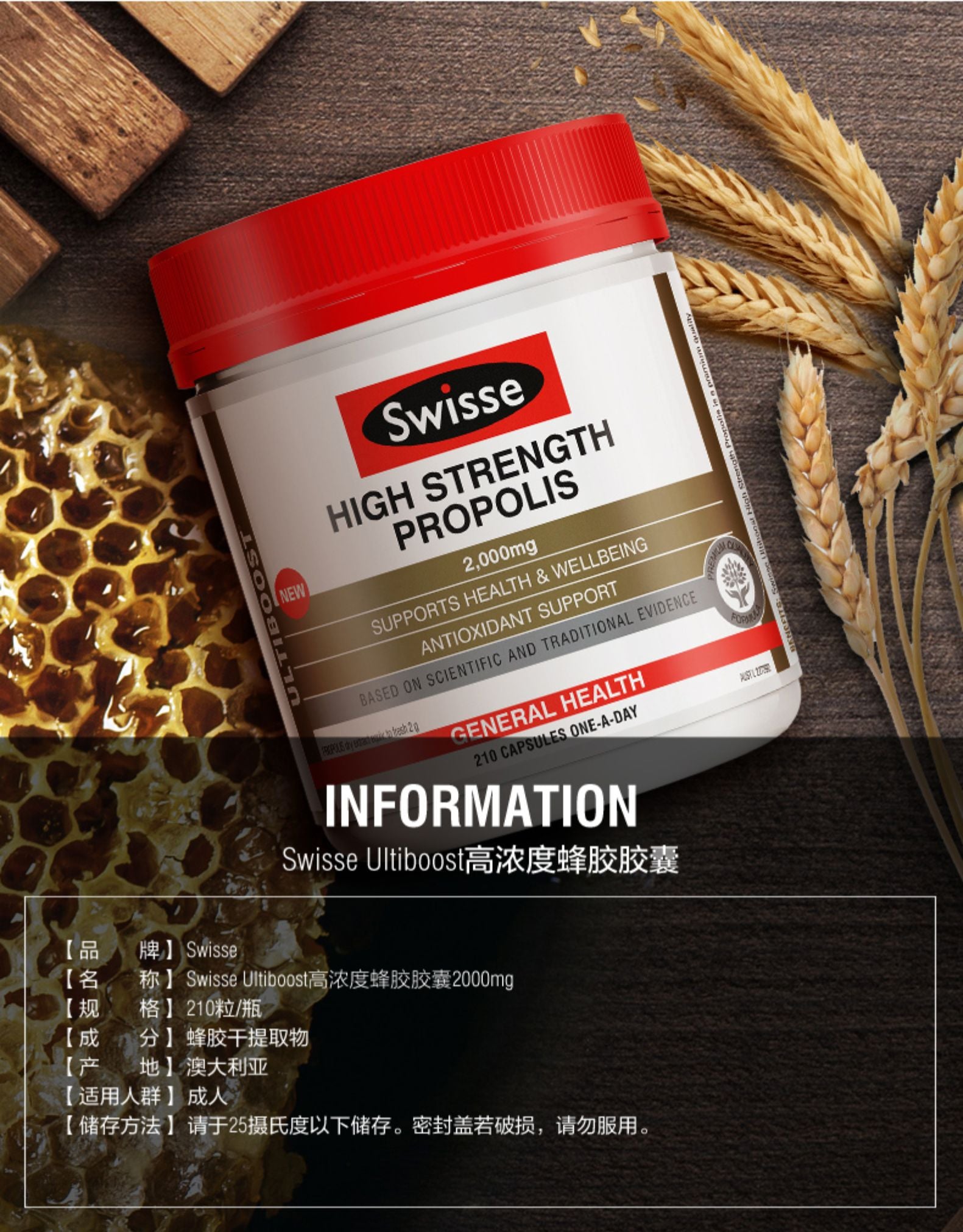 主页 Swisse/斯维诗 【包邮包税】澳洲Swisse HIGH STRENGTH Propolis高浓度蜂胶胶囊 2000mg 210粒