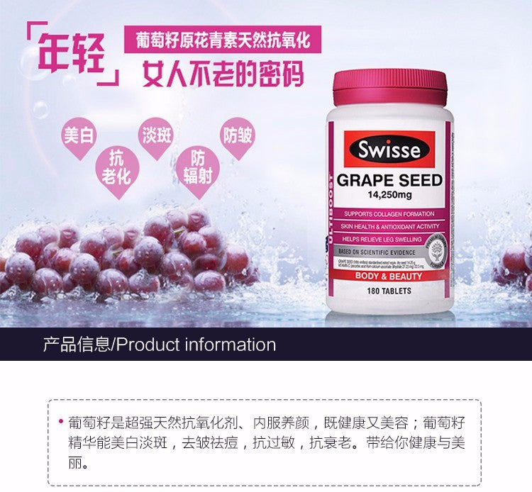 | 品名: | 澳洲Swisse葡萄籽精华180粒 |