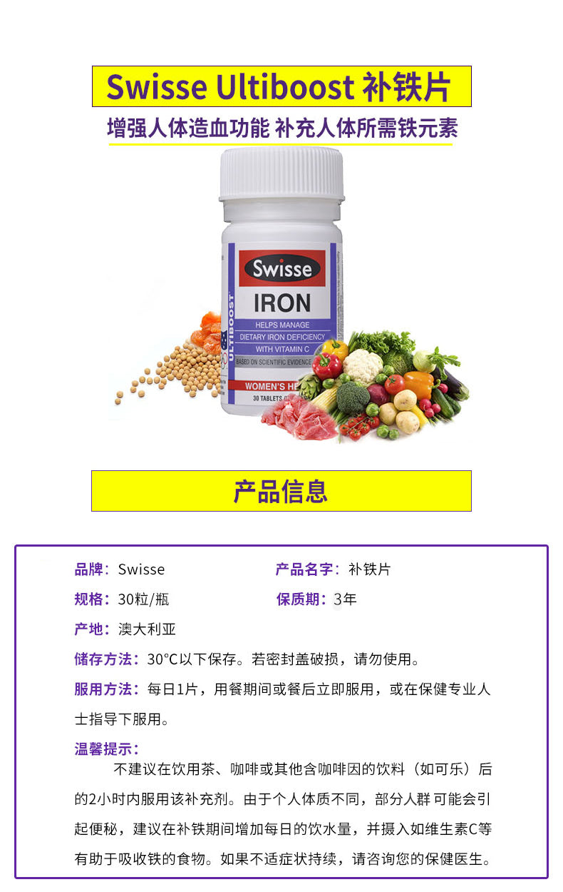 【包邮包税】澳洲Swisse IRON 补铁片补血营养片铁元片 30粒