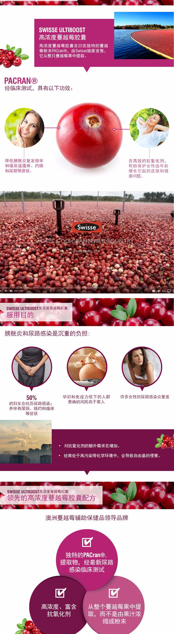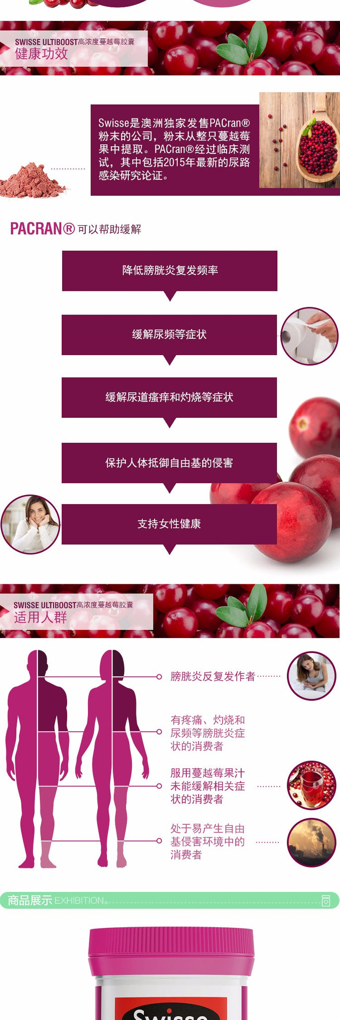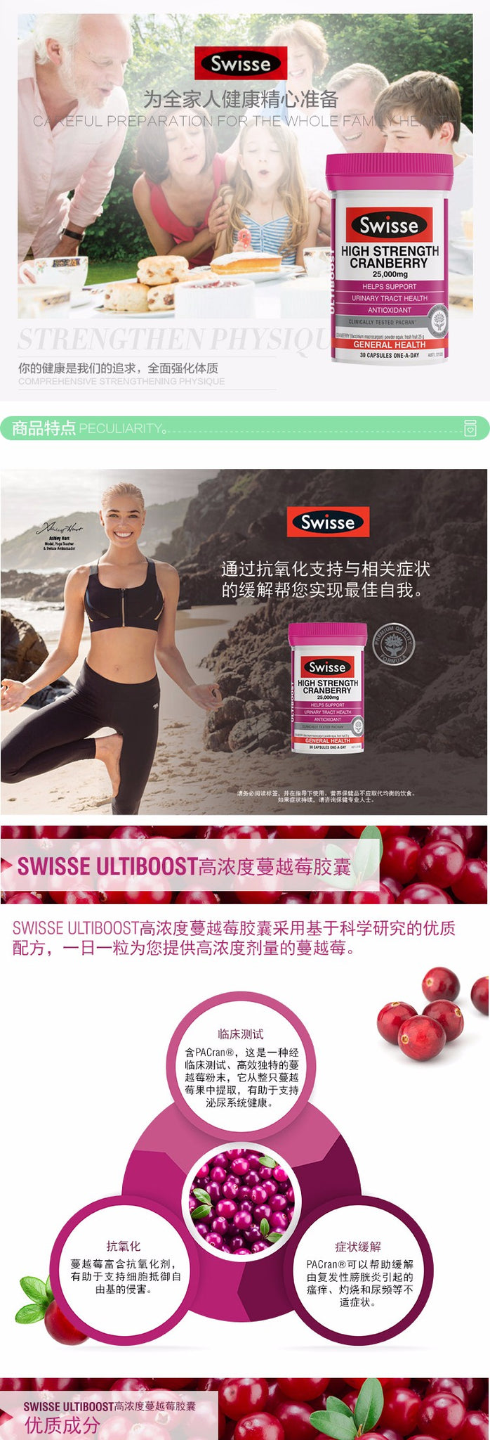 主页 Swisse/斯维诗 【包邮包税】澳洲Swisse HIGH STRENGTH CRANBERRY蔓越莓精华胶囊 30粒