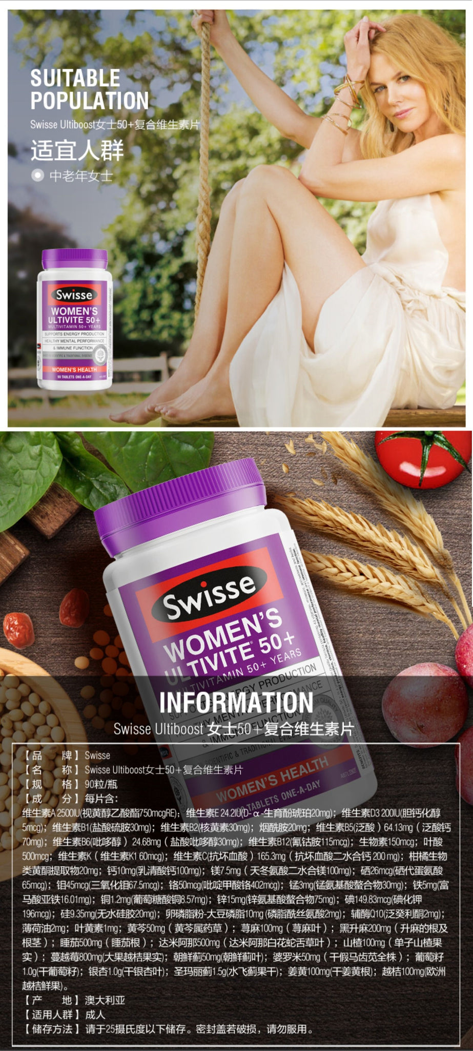 【包邮包税】澳洲Swisse WOMEN'S ULTIVITE 50+中老年女士50+复合维生素 90片