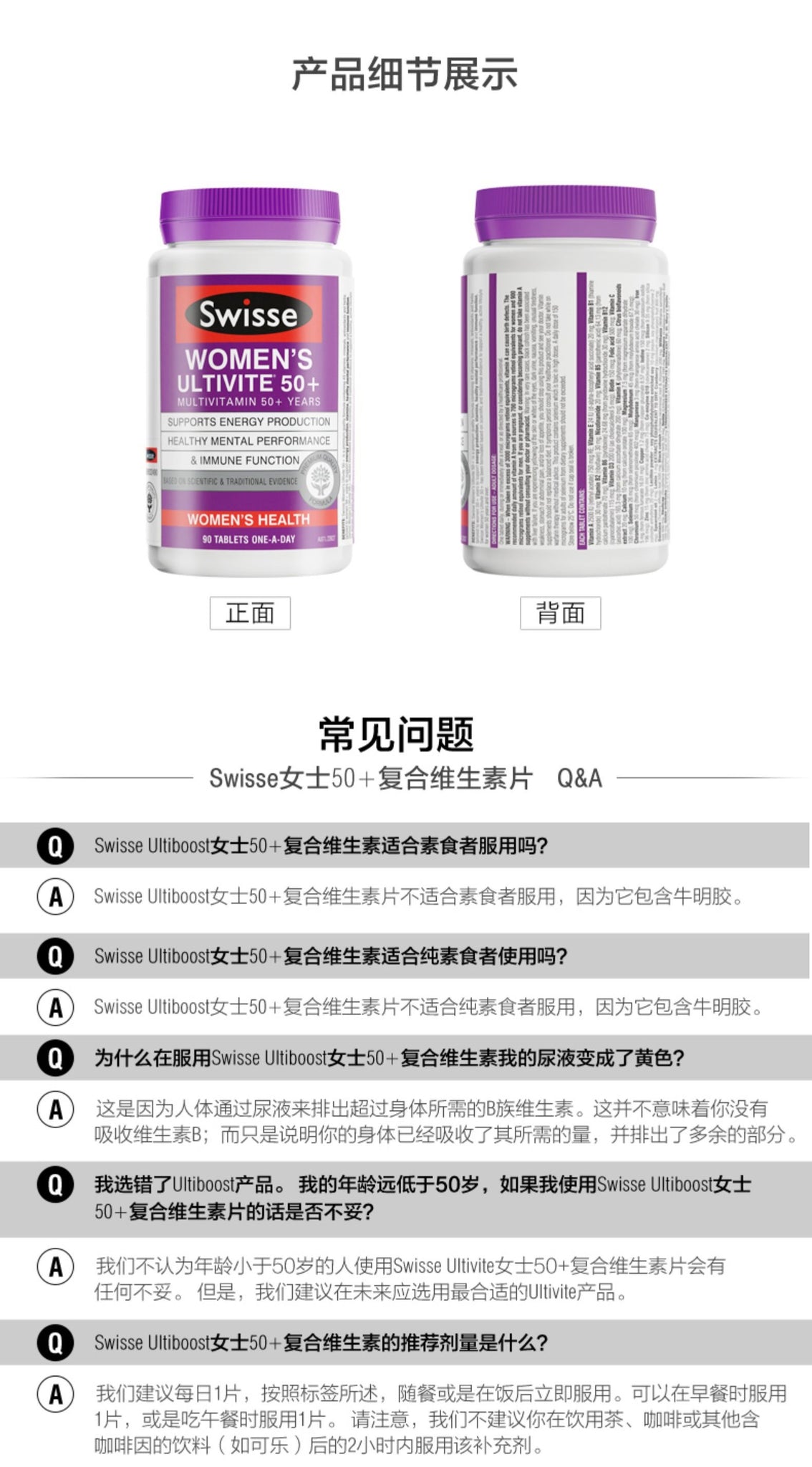 主页 Swisse/斯维诗 【包邮包税】澳洲Swisse WOMEN'S ULTIVITE 50+中老年女士50+复合维生素 90片