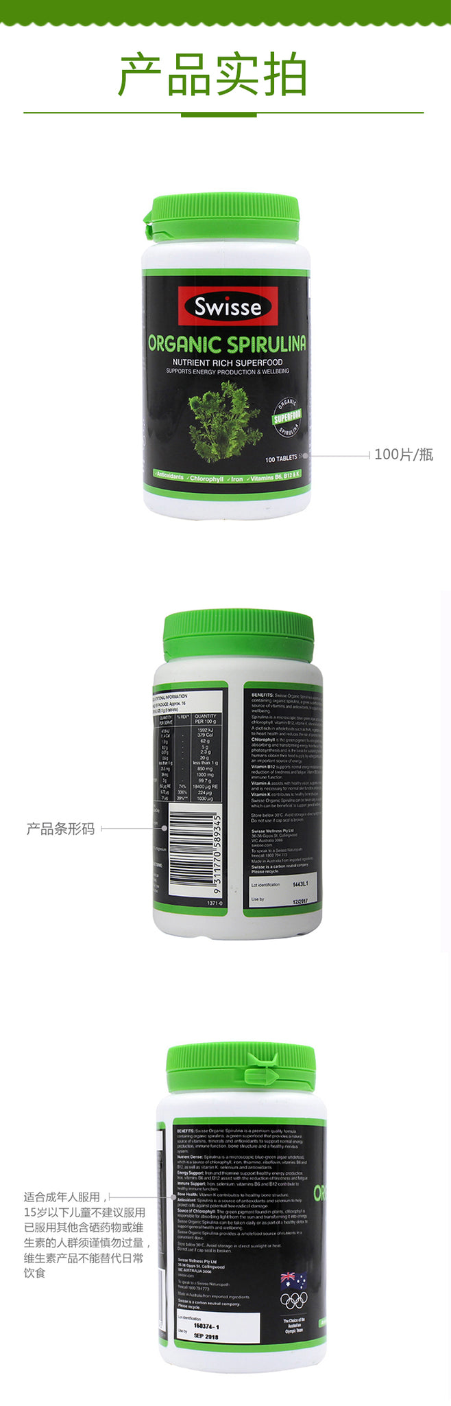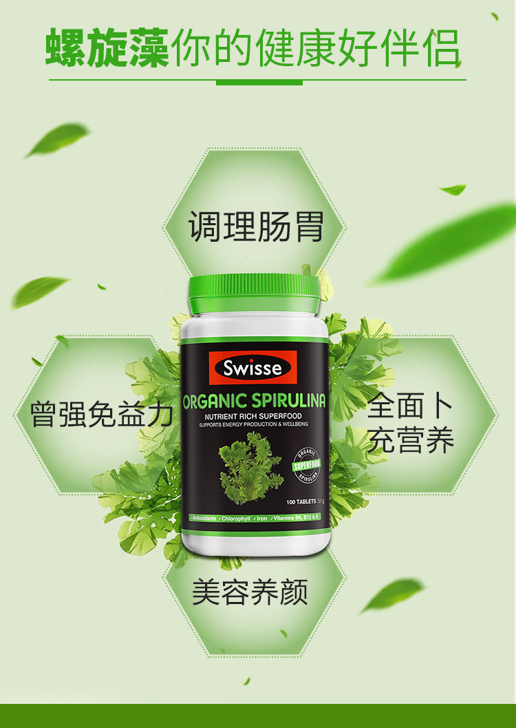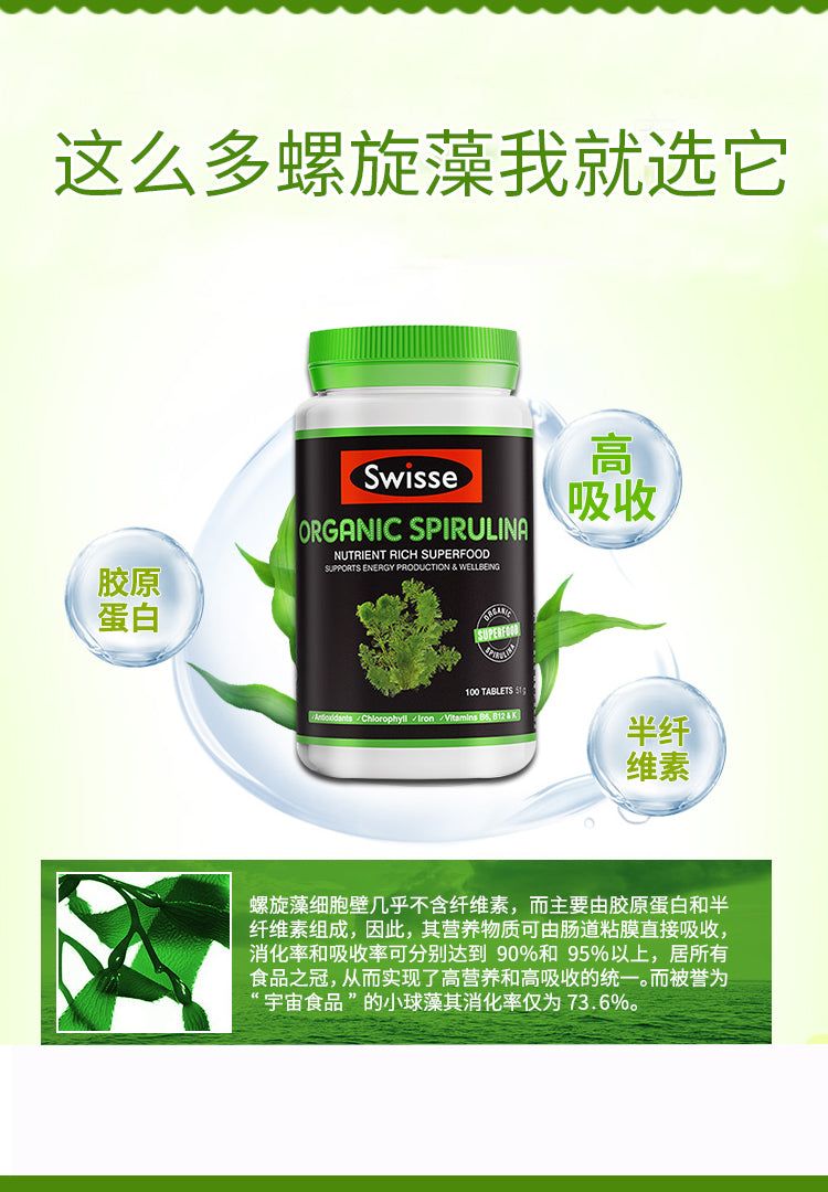 【包邮包税】澳洲Swisse ORGANIC SPIRULINA有机天然高浓度螺旋藻片 100片