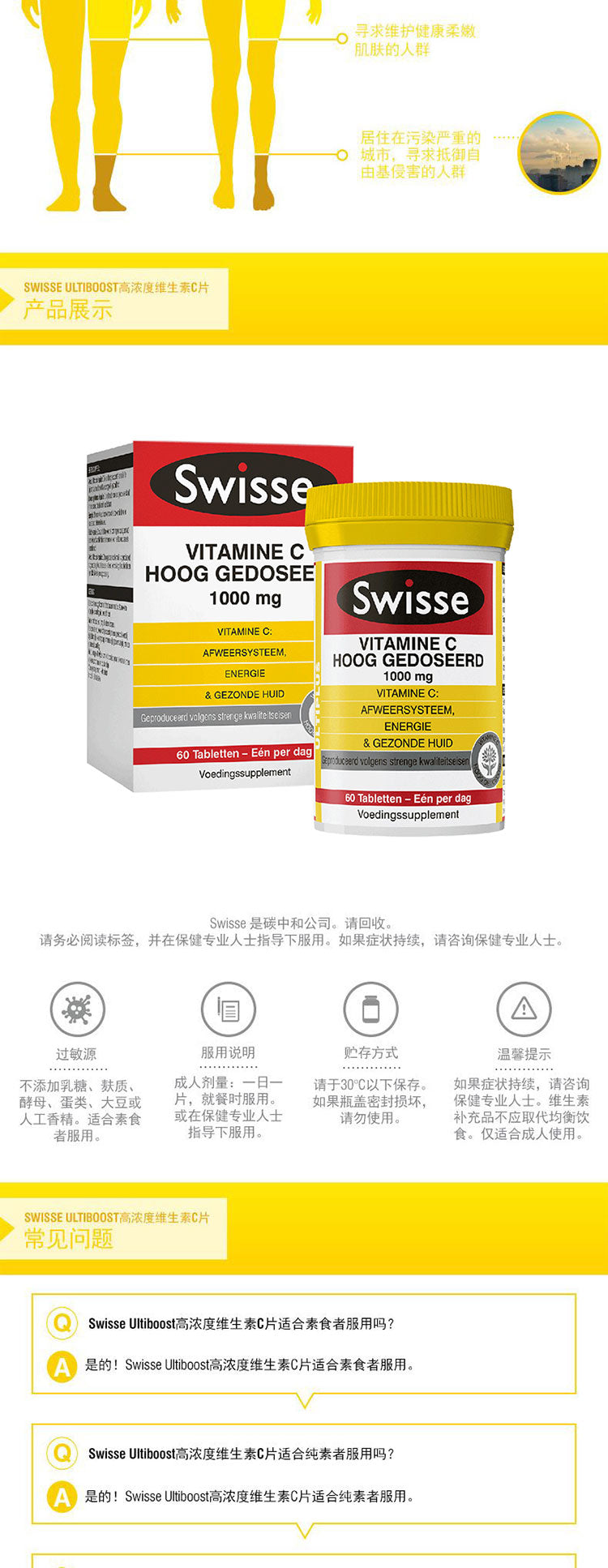 【包邮包税】澳洲Swisse VITAMINE C HOOG GEDOSEERD维生素C片荷兰版 1000mg 60片
