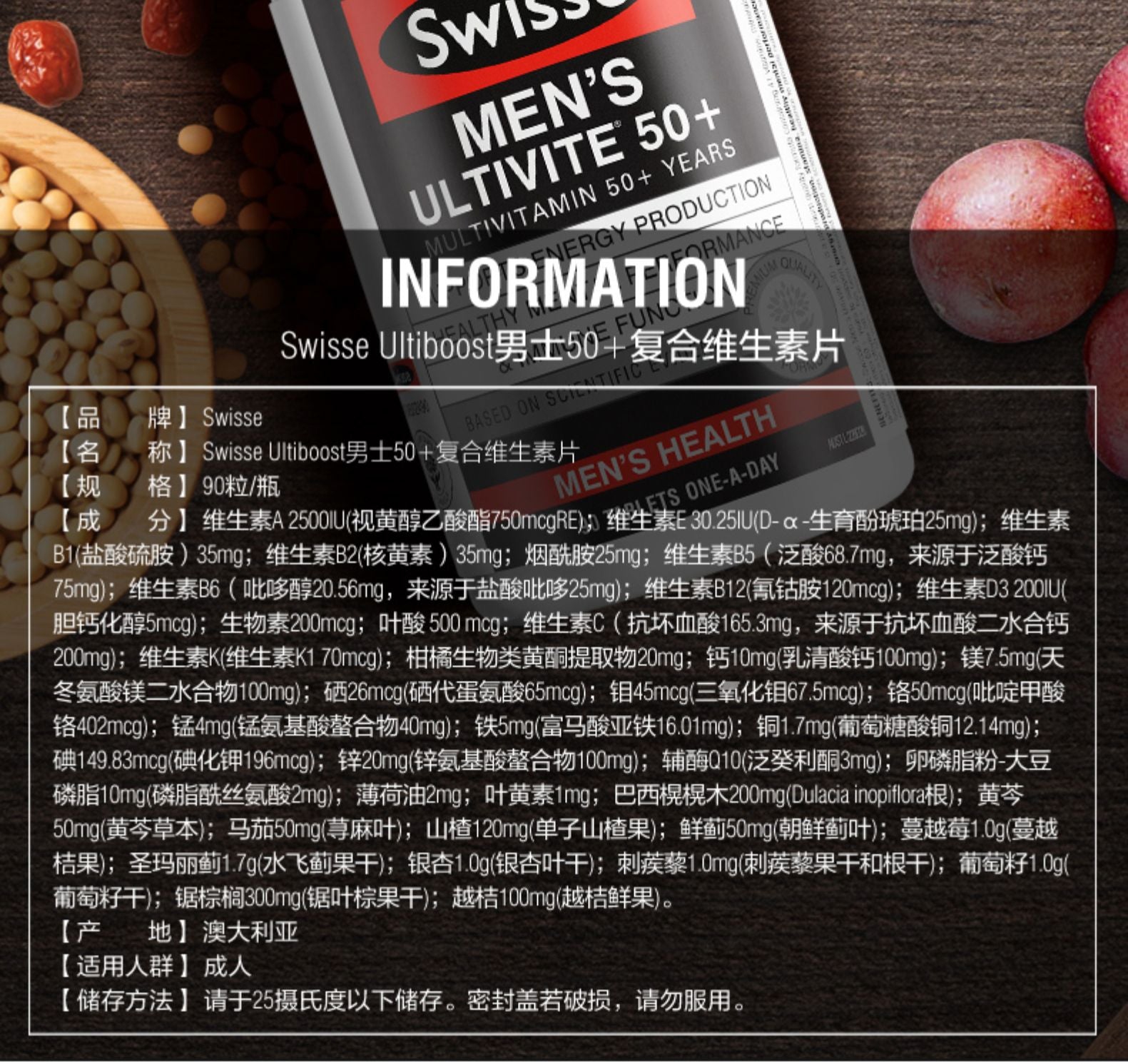 【包邮包税】澳洲Swisse MEN'S ULTIVITE 50+中老年男士50+复合维生素 90片