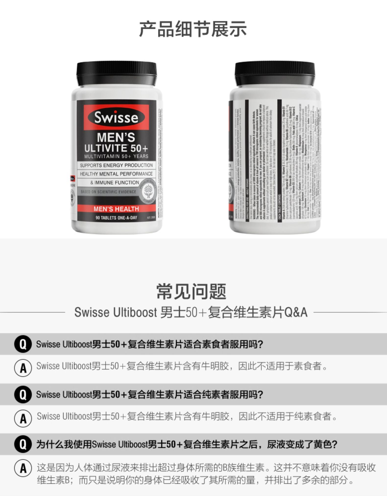 主页 Swisse/斯维诗 【包邮包税】澳洲Swisse MEN'S ULTIVITE 50+中老年男士50+复合维生素 90片