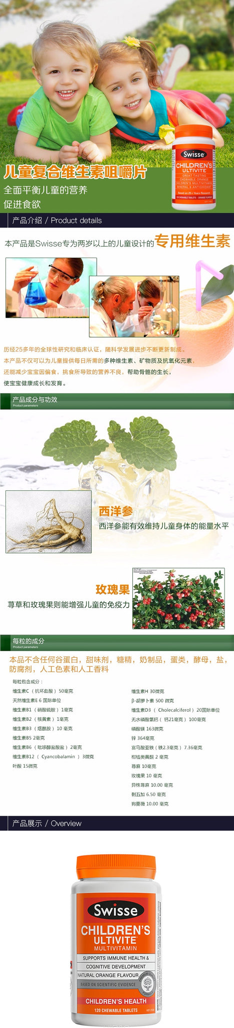主页 Swisse/斯维诗 【包邮包税】澳洲Swisse CHILDREN'S ULTIVITE儿童复合维生素矿物质咀嚼片 120粒