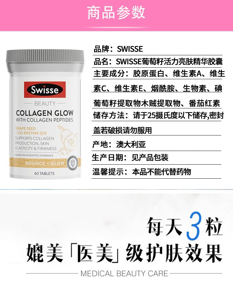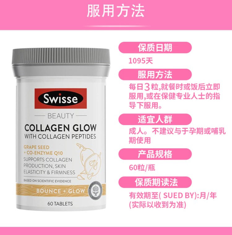 【包邮包税】澳洲Swisse COLLAGEN GLOW冻龄护肤胶原蛋白肽水光片 60粒
