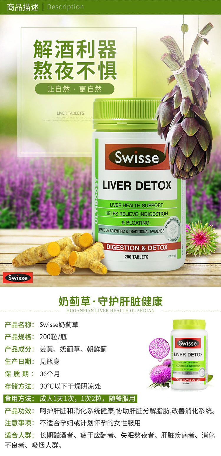 【包邮包税】澳洲Swisse LIVER DETOX护肝片奶蓟草片 200粒