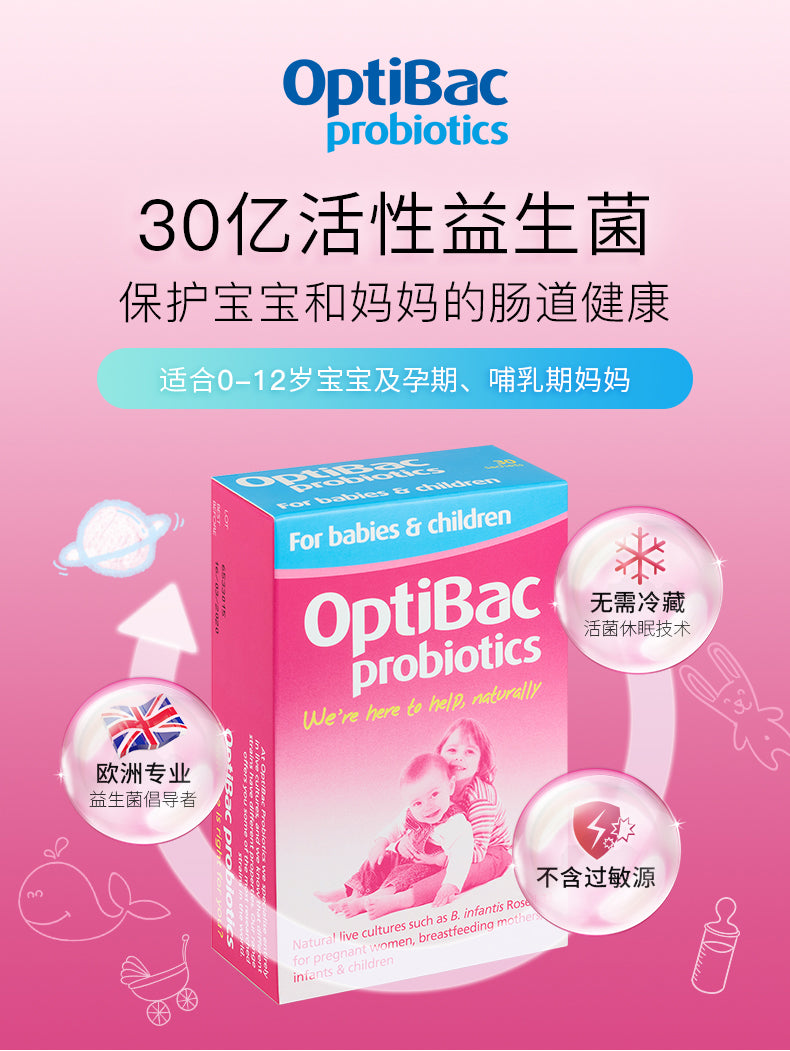 【包邮包税】OptiBac probiotics复合益生元益生菌冻干粉婴幼儿童宝宝正品调理肠道胃冲剂 30袋/盒