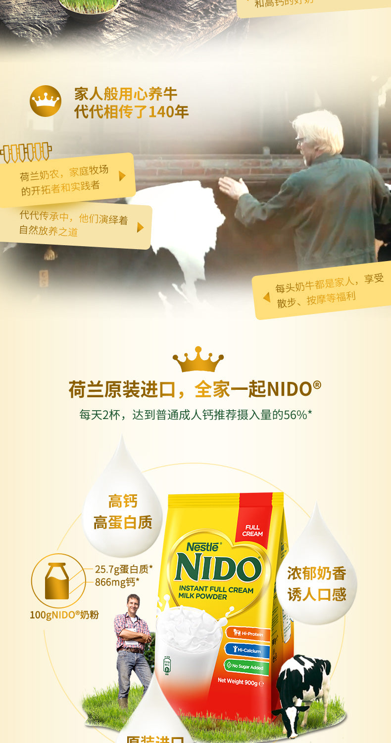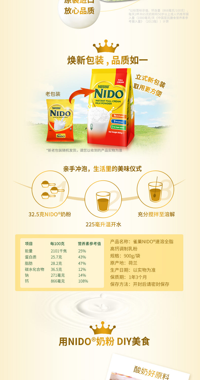 主页 【现货包邮】nestle雀巢Nido 袋装成人全脂奶粉 900g