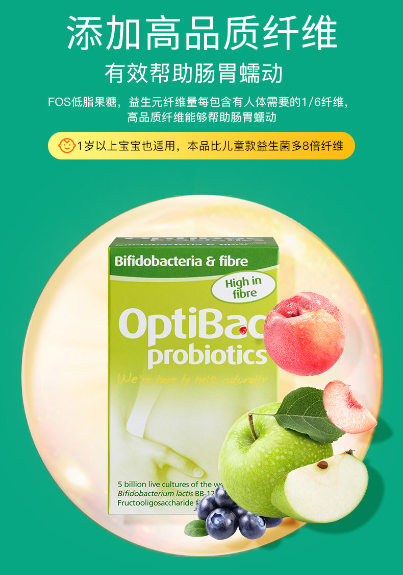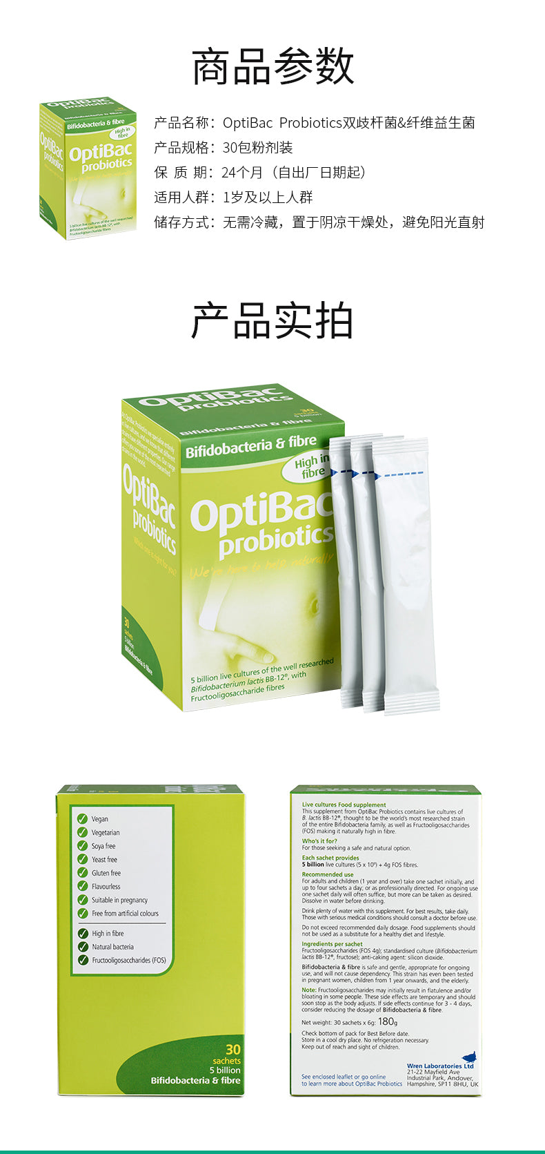 【现货包邮】OptiBac probiotics双歧杆菌纤维益生菌冲剂装 30包