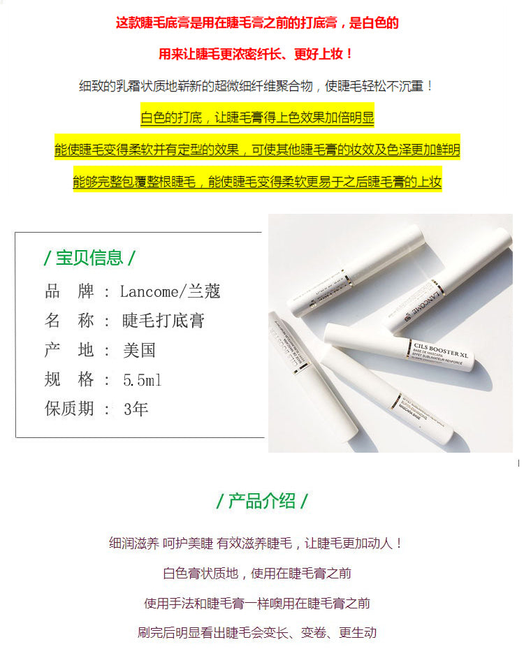 | 品名: | 法国兰蔻LANCOME新版XL浓长加倍睫毛打底膏 5.5ml |
