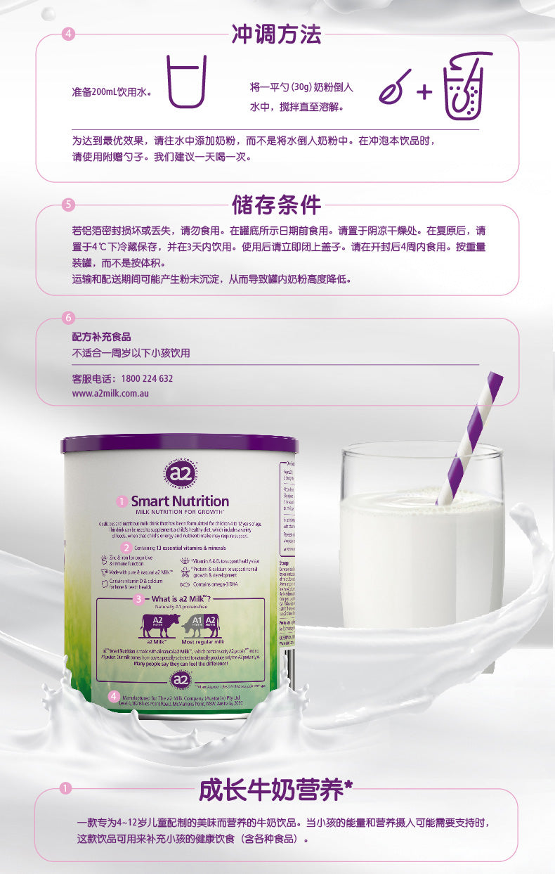 【包邮包税】澳洲a2强化蛋白含多种维生素聪明补钙 儿童(4-12岁)成长奶粉 750g
