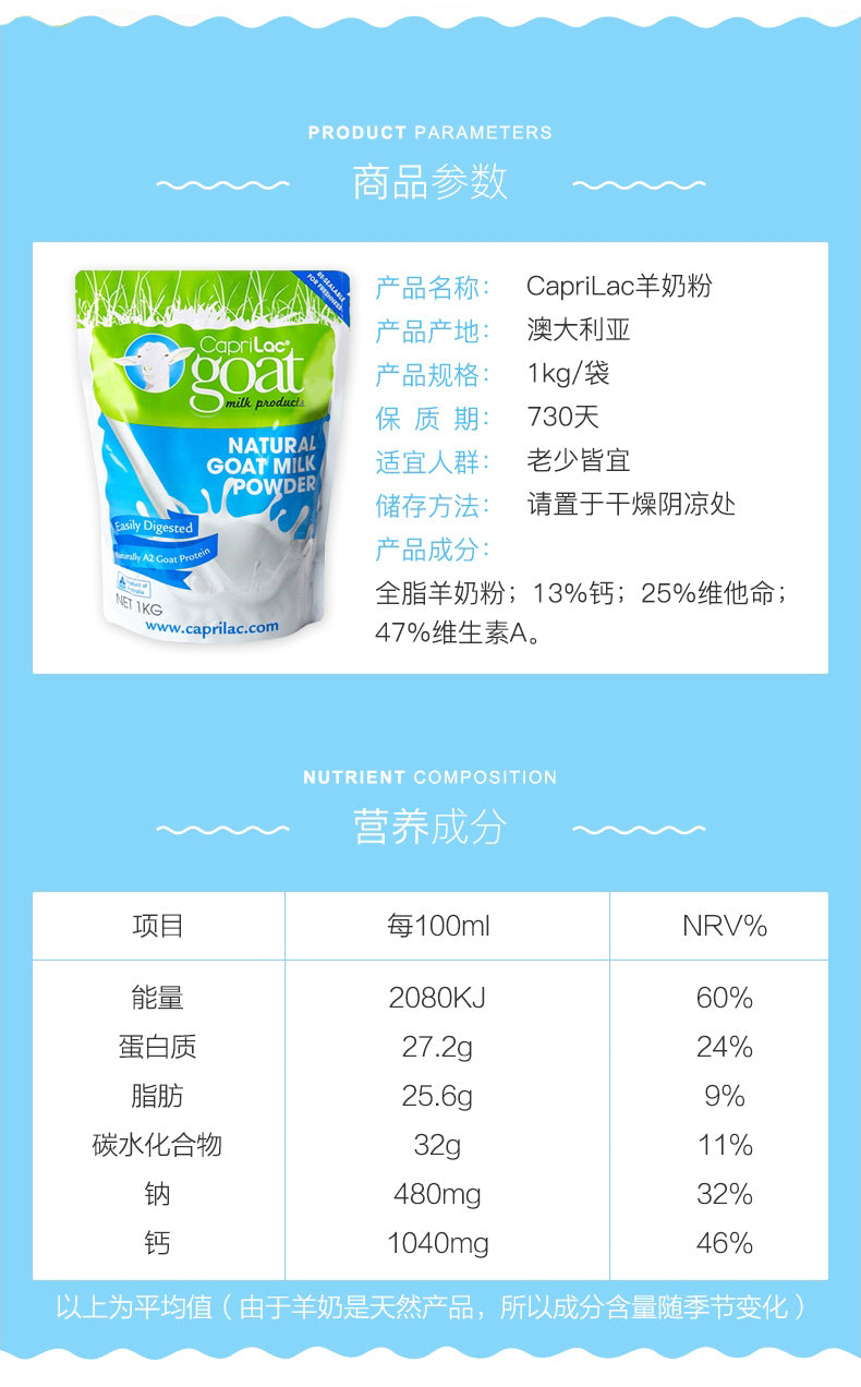 主页 【包邮包税】Caprilac佳倍营成人青少年成人老年人全脂高钙高钙高蛋白 羊奶粉 1kg