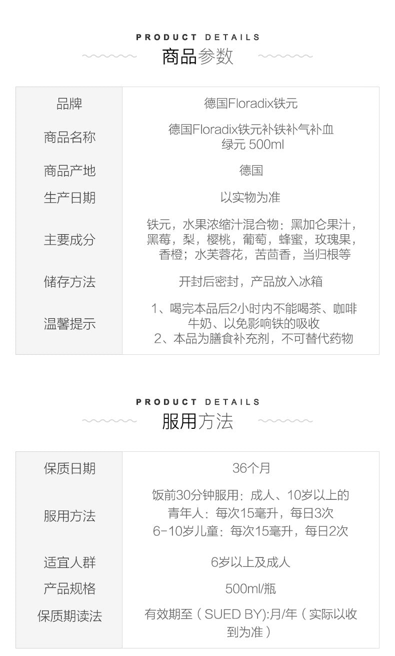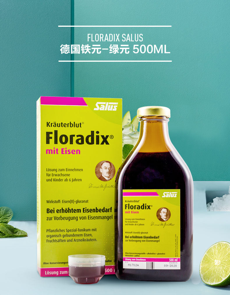 【包邮包税】Floradix莎露斯Salus成人女性孕妇补铁补血 铁元液口服液 绿版绿元 500ml