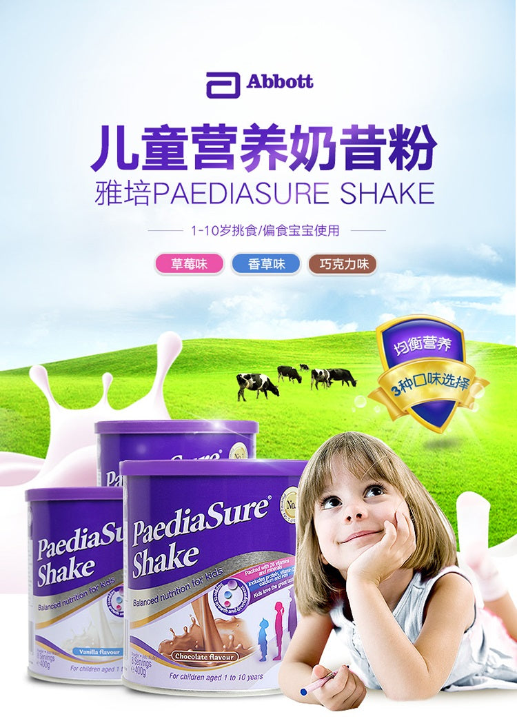 品名: 英国雅培小安素PaediaSure儿童营养奶昔粉巧克力味 400g