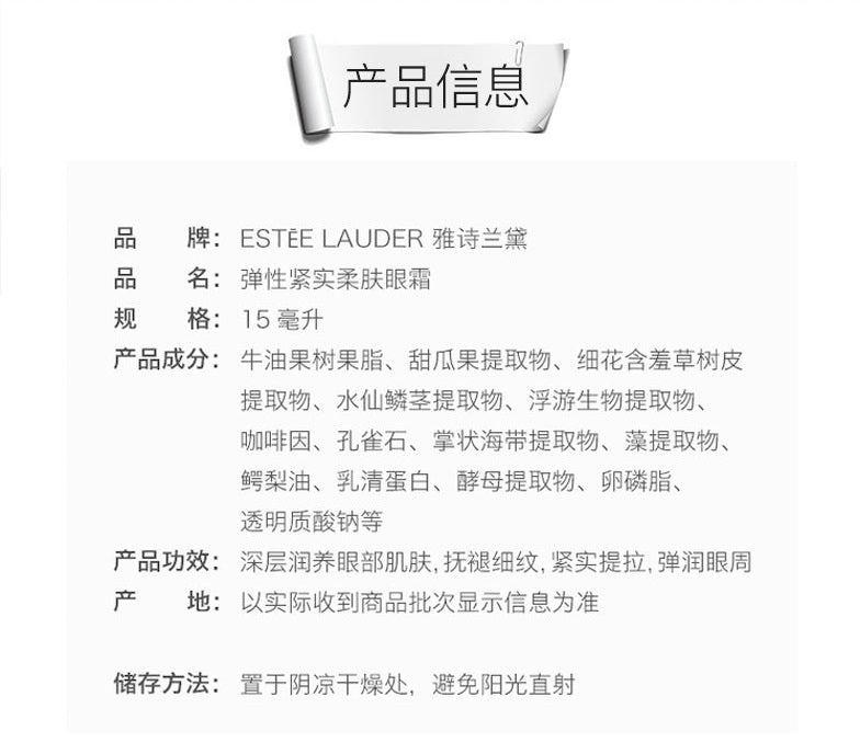 主页 【包邮包税】Estee Lauder雅诗兰黛Resilience Lift弹性紧实柔肤眼霜 15ml