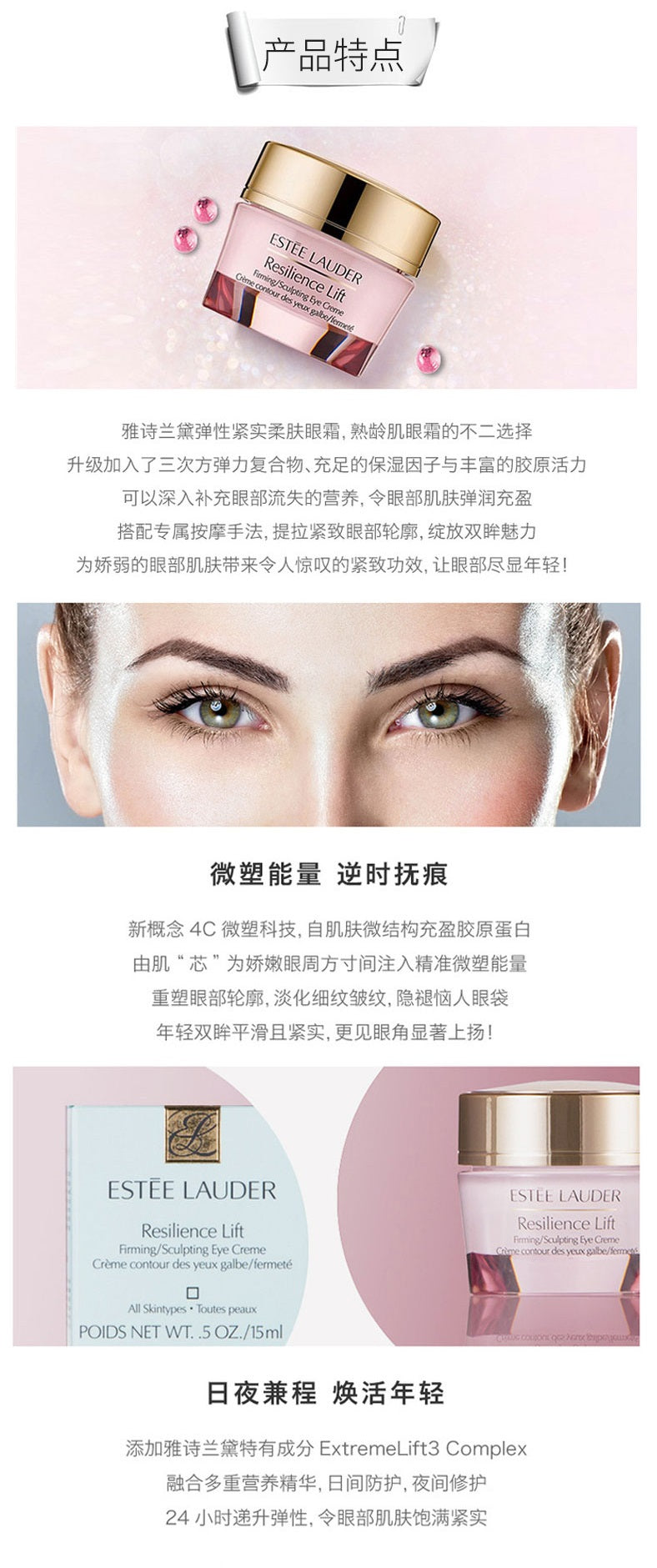 【包邮包税】Estee Lauder雅诗兰黛Resilience Lift弹性紧实柔肤眼霜 15ml